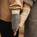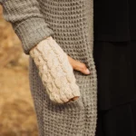 Contemporary and practical mittens keep hands and wrists warm while leaving fingers free. Perfect for using a phone or for outdoor walks. Hand-knitted with a stylish cable pattern.