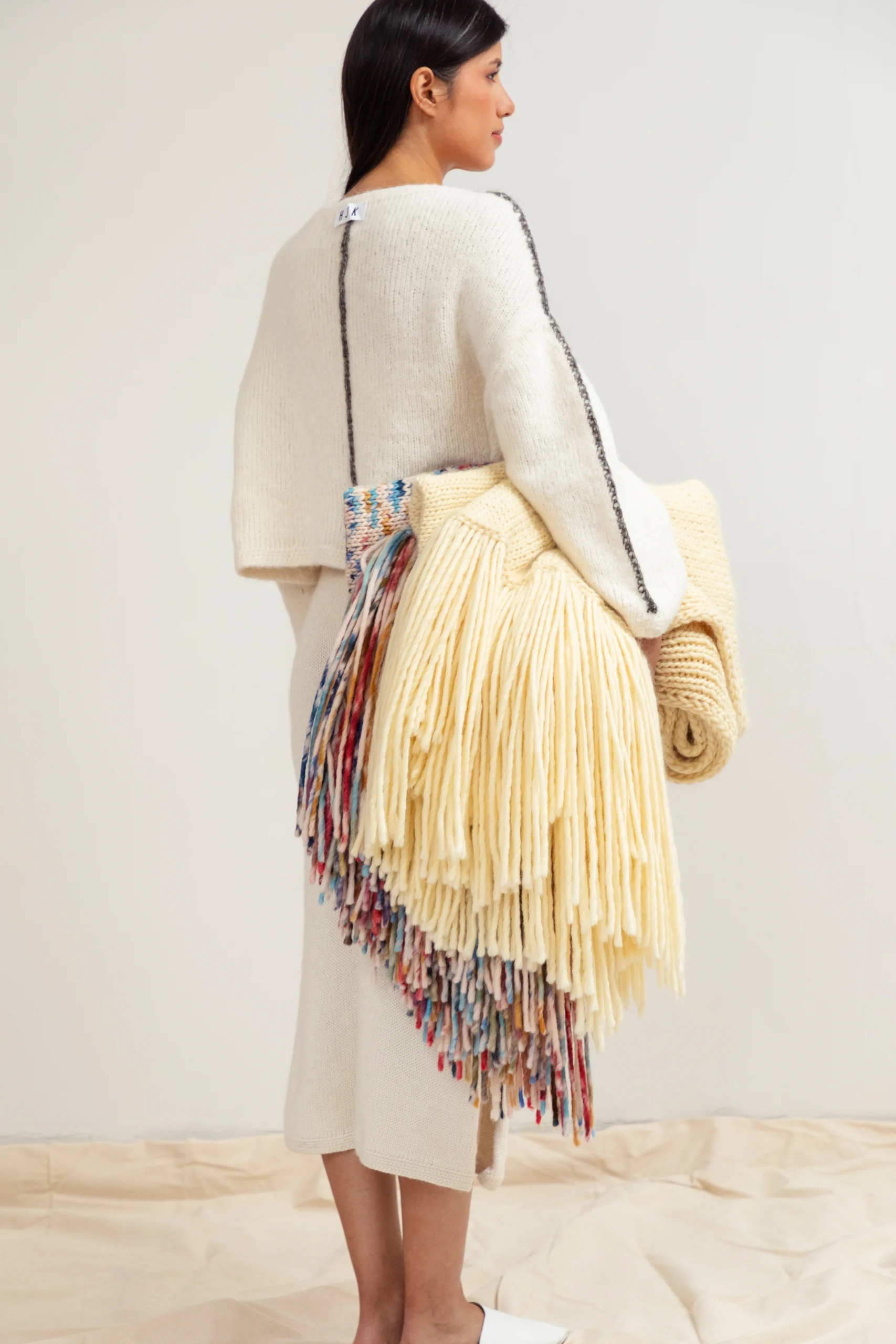 Plongez dans l’élégance artisanale et découvrez le talent de créatrice d’Hannah Jenkinson. Ce Pull Boxy, une pièce unique qui allie tradition et durabilité a été tricoté dans un petit atelier familial de Cusco, au Pérou, il est réalisé avec soin par des femmes d’une communauté locale péruvienne, perpétuant un savoir-faire ancestral.