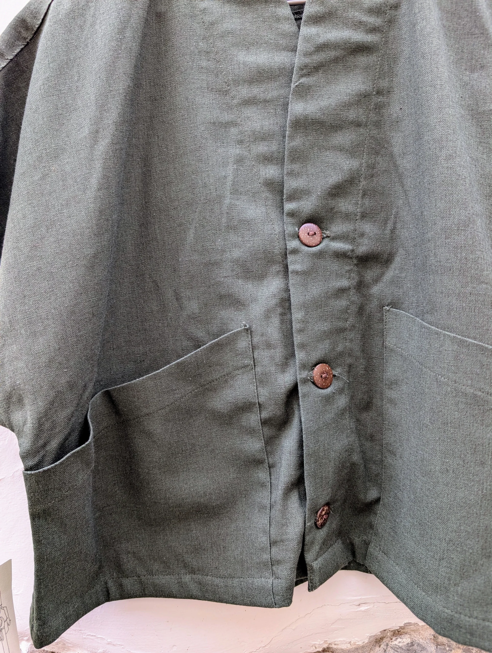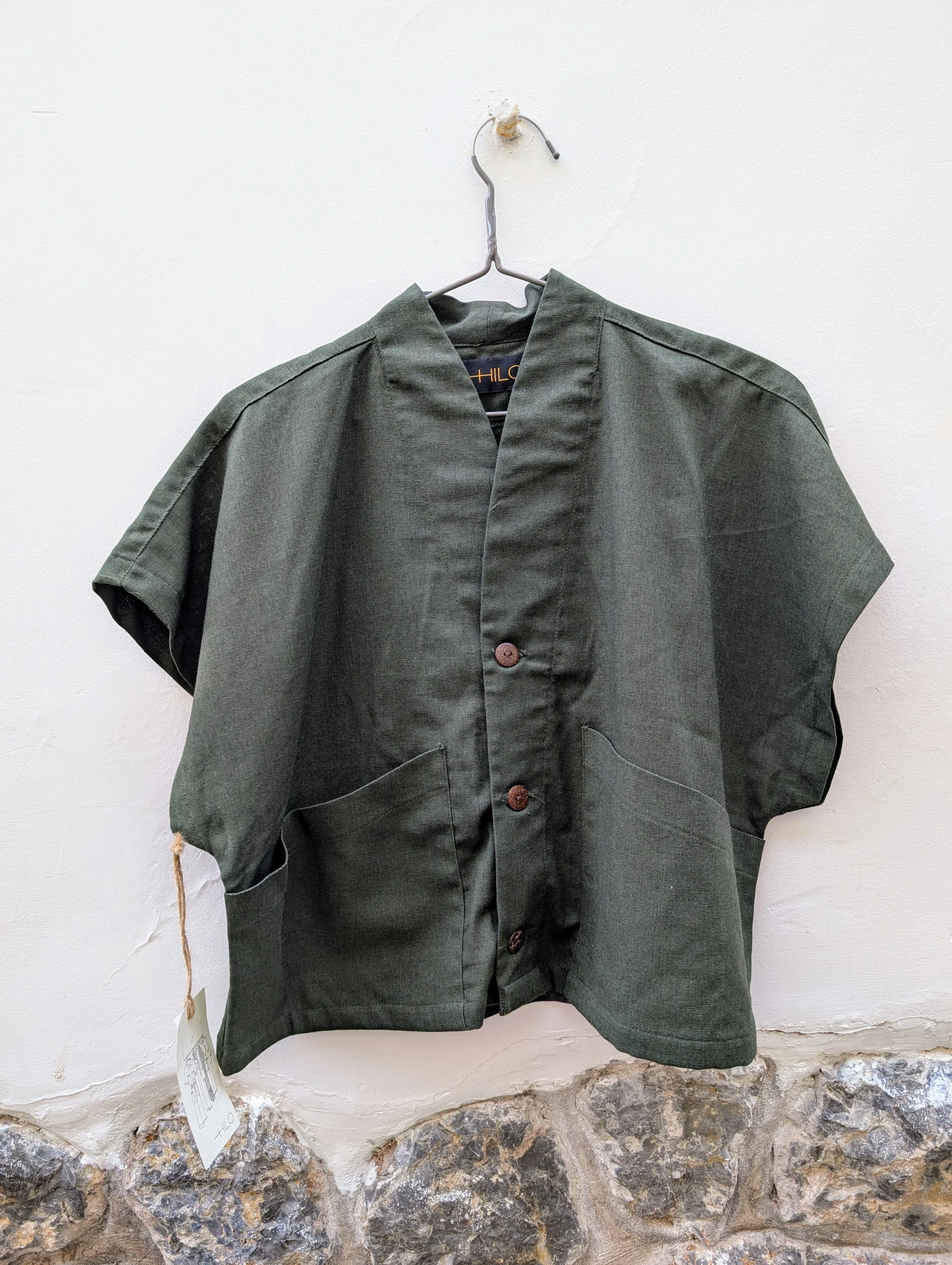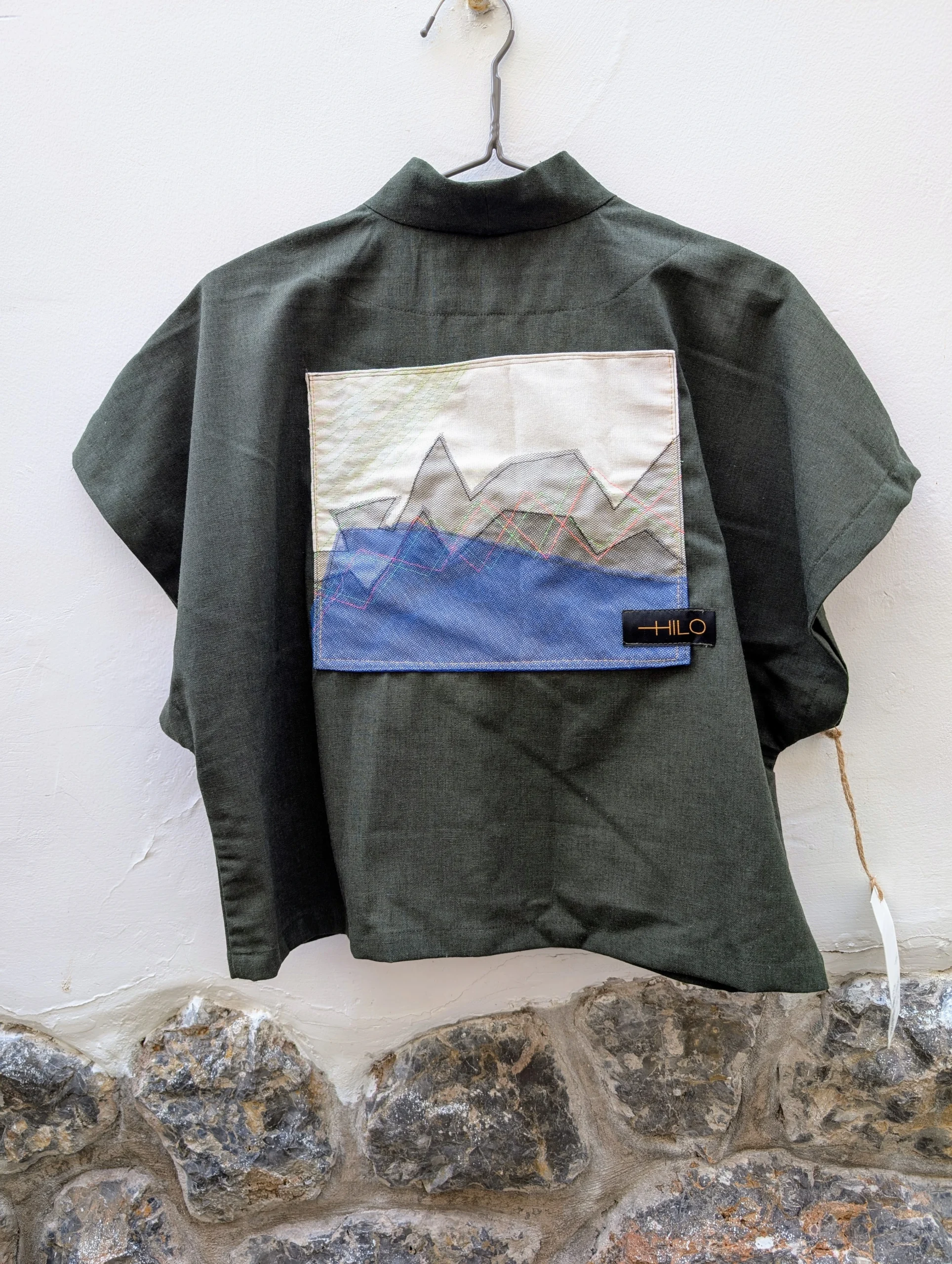 Optez pour un style naturel avec cette chemise en lin kaki à manches courtes. Légère et respirante, elle se distingue par un écusson unique cousu à la main dans le dos, représentant les paysages andins chers à la créatrice Eibhlin. Un vêtement unique qui conjugue confort et artisanat d’exception.